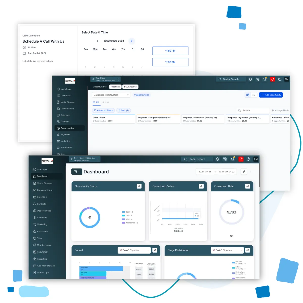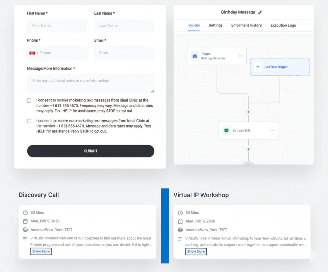 Keep detailed records of client interactions, track weight loss progress, and manage long-term relationships with our comprehensive CRM system tailored for Ideal Protein clinics.